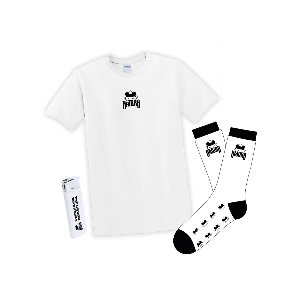 Incluye camiseta, mechero recargable con el logo de Nàtura y mensaje: “El millor de la FESTA sempre és la TRALLA”, y calcetines estampados con el logo.
